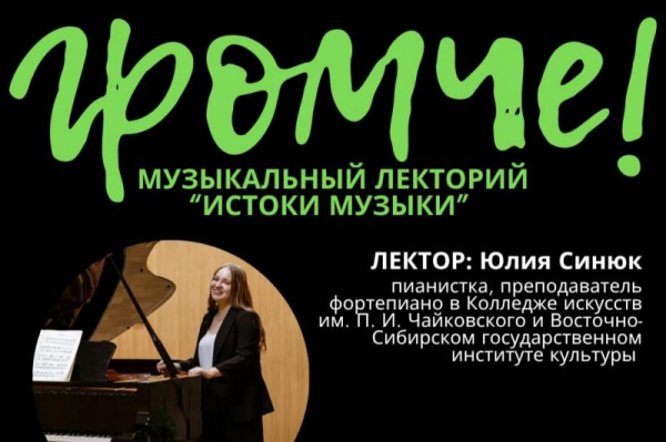 Лекцию проведёт пианистка, преподаватель фортепиано в Колледже искусств имени Чайковского и ВСГИК Юлия Синюк. В ходе мероприятия посетители смогут узнать о древних нотных системах, гитарных аккордах и цифровой записи. Также гости смогут понять музыку, узнать, как она рождается, и по-новому услышать даже знакомые мелодии.