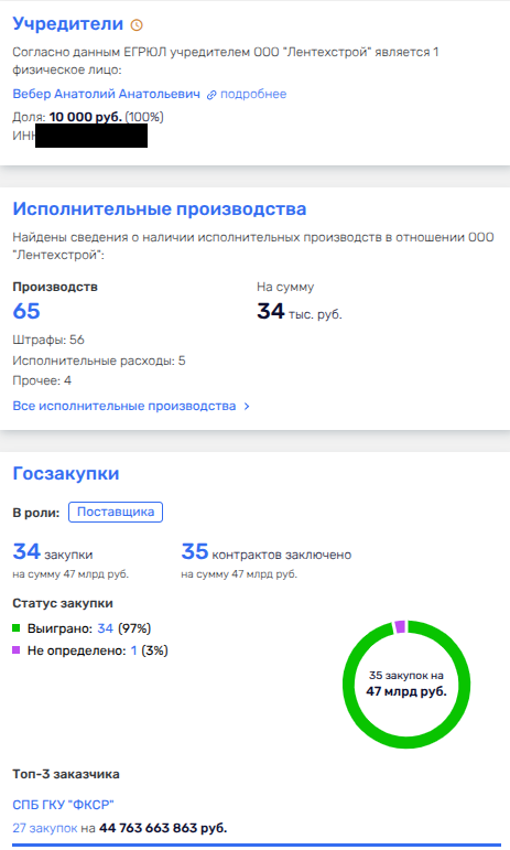 Также роль ширмы в целой пачке госконтрактов может выполнять тесно связанный с Креславскими Анатолий Вебер - владелец ООО «Лентехстрой», еще один любимчик фонда Фаталиева. Сообща они уже прокрутили почти 45 млрд рублей. Как вам оборотики?