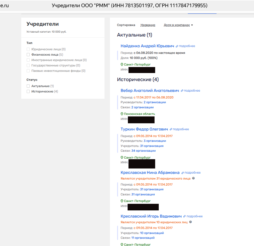 При этом Вебер с Игорем и Ниной Креславскими Вебер пересекался по ООО «РММ».