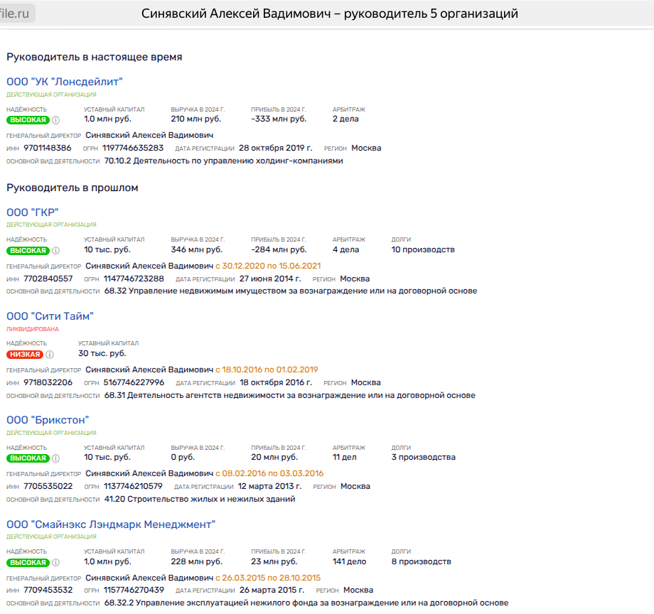 Помимо Крючкова и Карчева, в истории продажи трех фирм Бородако всплыла и фамилия другого, не менее одиозного девелопера - бывшего партнера акционера ПИК Сергея Гордеева Алексея Тулупова. Так, ООО «УК Лонсдейлит», которой Крючков передал покупки в управление, подконтрольно Алексею Синявскому, что в свою очередь работал директором двух активов Тулупова - ООО «Смайнэкс Лэндмарк Менеджмент» и ООО «Брикстон».