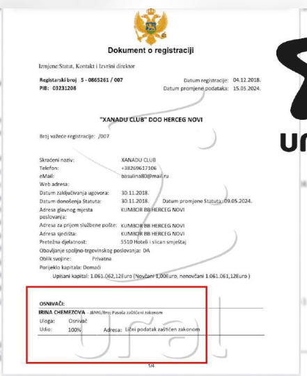По иску прокуратуры о взыскании ущерба и национализации проходит и жена чиновника Ирина Чемезова (номинально бывшая), которую к тому же обвиняют в помощи ВСУ в принадлежащем ей четырехзвездочном отеле в Черногории. Мол, даже имелся контракт от банды Зеленского на услуги для солдат ВСУ.