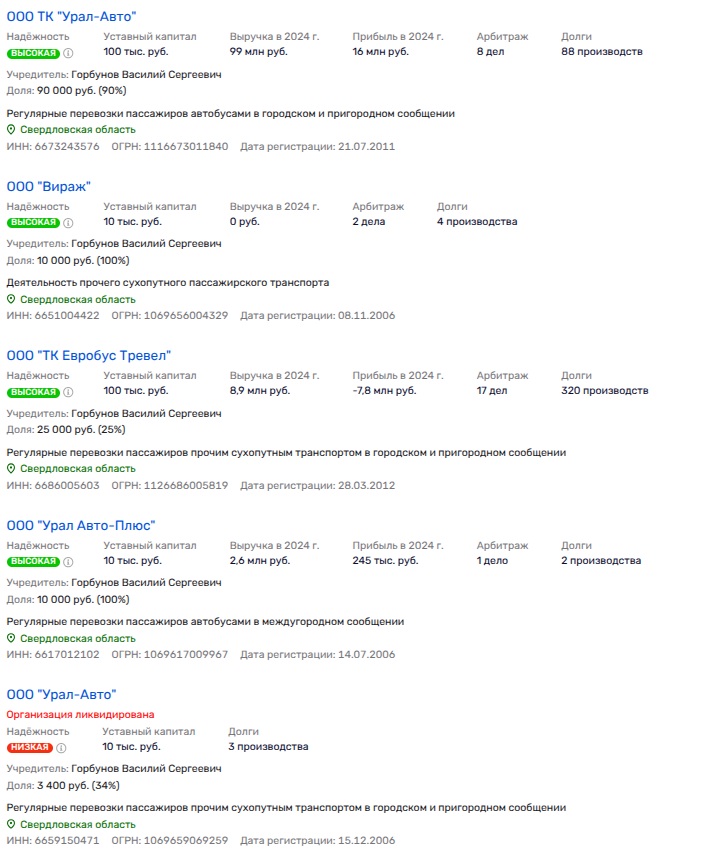 Его родственник - Иван Горбунов - также отхватил кусок рынка пассажирских перевозок.