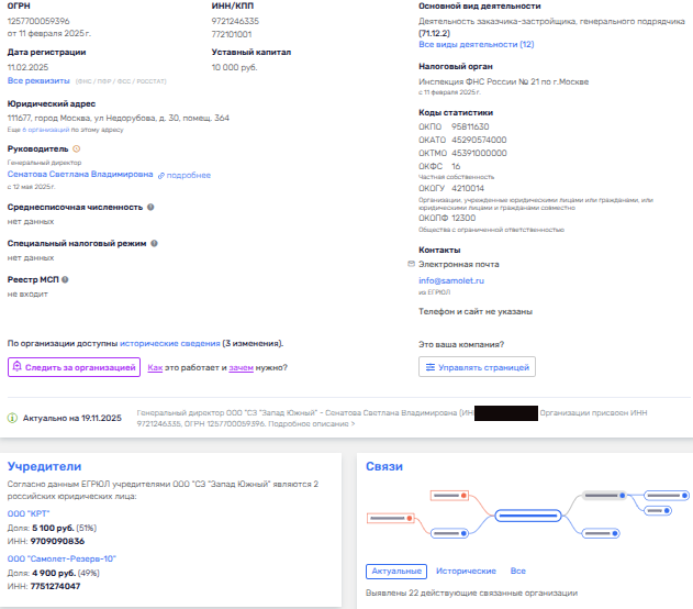 При этом, в сомнительных проектах Самолета принимает участие и команда Собянина - через созданное департаментом горимущества ООО «КРТ». Именно с этой кубышкой у юрлиц Самолета создана целая пачка общих юрлиц для освоения московских земель, в их числе - ООО «СЗ Запад Южный» и ООО «СЗ РМ-1». Последнее через ООО «СЗ Резерв-13» подконтрольно как раз таки ООО «Самолет Две столицы», всплывшем в латвийской истории, и ООО «КРТ».