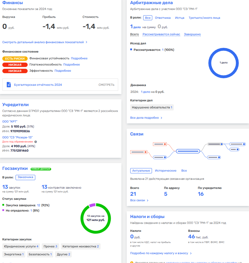 Созданное в мае 2024 года ООО «СЗ РМ-1» сразу же стало прослойкой, через которую пошли бюджетные деньги на разного рода услуги при освоении территории на ул. Мосфильмовская, влд. 74-78. В целом через кубышку как через заказчика прогнали 121 млн рублей и при этом данные подрядчиков банально скрывают.