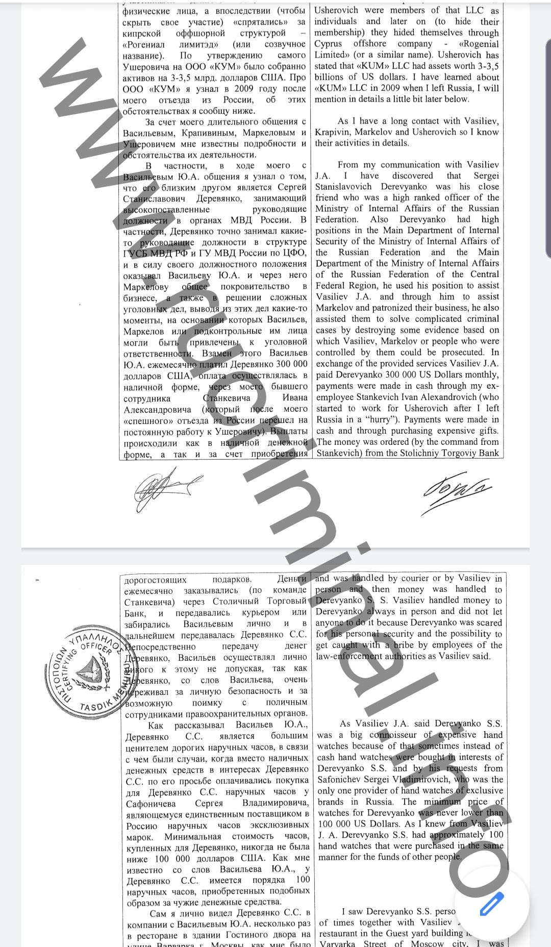 — Валерия Маркелова и Бориса Ушеровича, руководителей ГК “1520”, при которой Деревянко, по словам источников, обеспечивал “крышу” в период руководства ГУ МВД по ЦФО.
