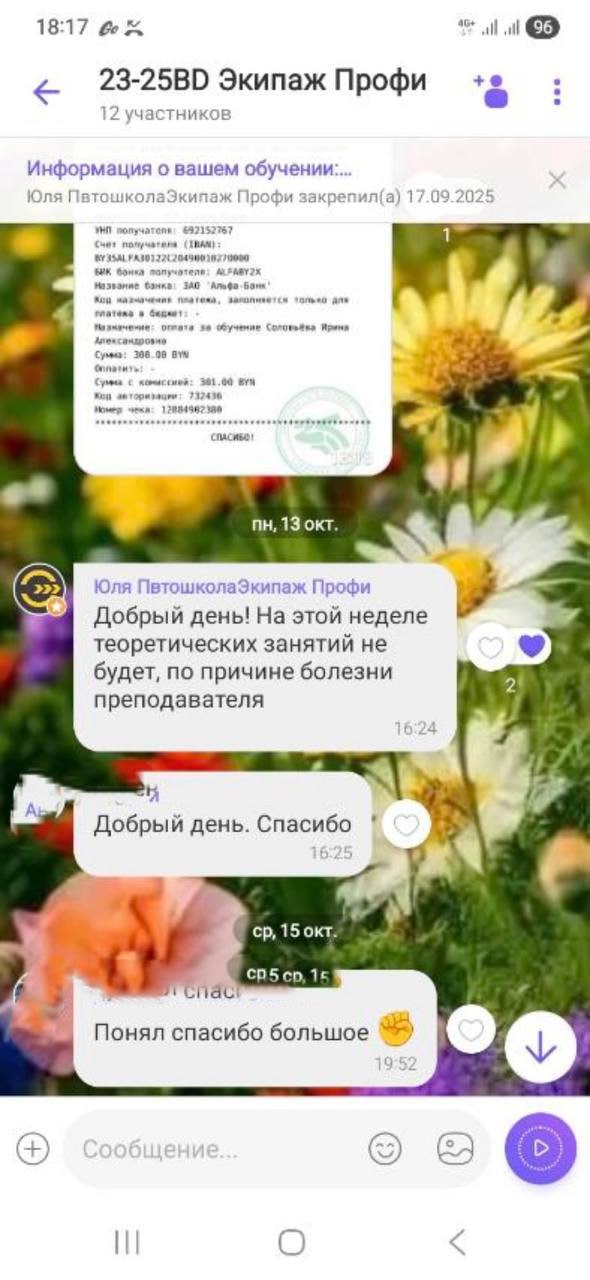 17 октября, по словам людей, в общий чат автошколы прислали сообщение:
