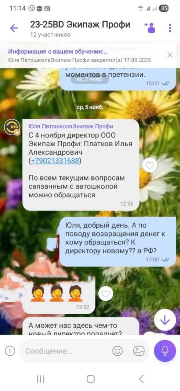 Позже группа обнаружила профиль директора в социальных сетях — как автоинструктора — и там же, по их словам, нашлась и администратор, которая принимала заявления на возврат.