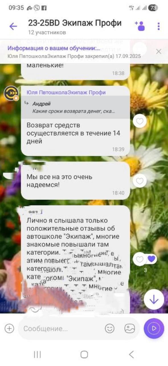 Пострадавшие, по их словам, считают, что действия руководства автошколы «Экипаж Профи» выглядят как попытка быстро собрать деньги с нескольких потоков и исчезнуть до момента, когда ученики начнут массово требовать услуги.