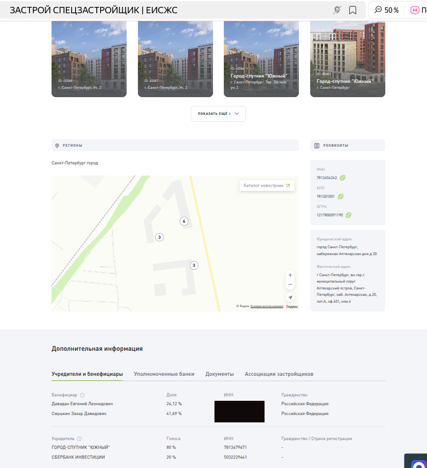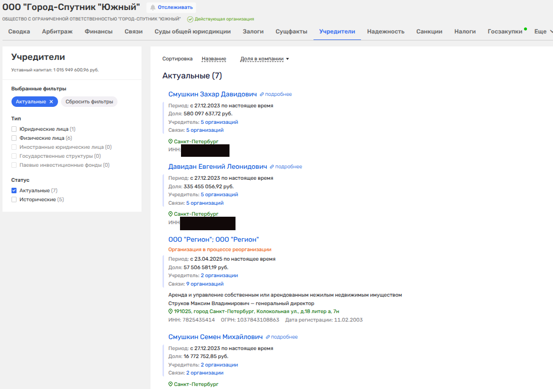 Интересный факт: ранее ООО «Город-Спутник «Южный» принадлежало иностранной компании «Кодалз Бизнес С.А.», зарегистрированной на Виргинских островах и скрывающей бенефициаров.