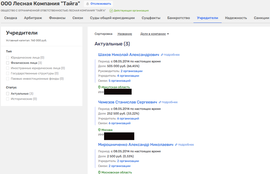 Связь со Слипенчуком у Чемезова и Шахова прослеживается через бывшую дочку ООО Лесная компания «Тайга» - Баяндаевский комбинат деревянного домостроения, которой фирма владела вместе с Шаховым и ООО «Востоклес», принадлежавшим ООО «Холдинговая Компания «Метрополь» Слипенчука. При этом иркутское ООО «Востоклес» изначально также работало в сфере распила древесины, а потом переобулось в управление финансово-промышленными группами, а 2018 году было и вовсе пущено под нож.
