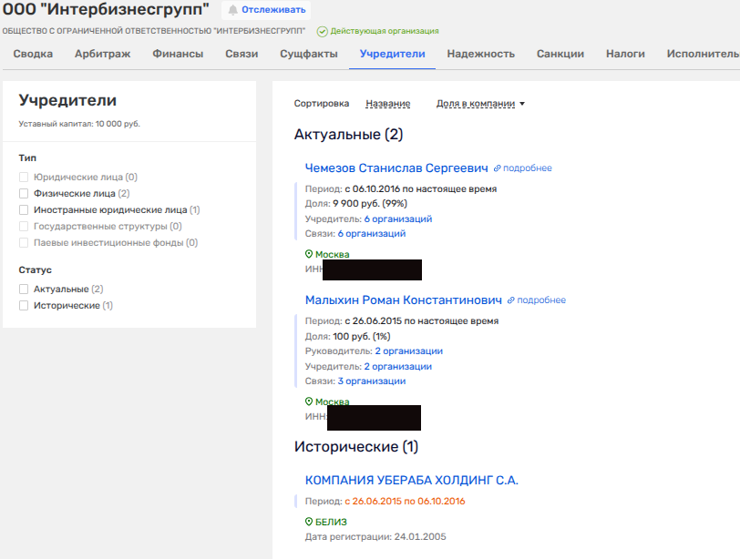 Причем в партнёрах Чемезова и Мирошниченко по ООО «Оборонцемент-Энерго» было некое ООО «Интербизнесгрупп», где Чемезов также имел долю. Примечательно, что партнером сына генерала в том бизнесе был офшор - УБЕРАБА ХОЛДИНГ С.А. из Белиза. Уж не через него ли уходили капиталы энергопоставщика, ведь в отличие от «Оборонцемент-Энерго» фирма «Интербизнесгрупп» вполне себе действующая?