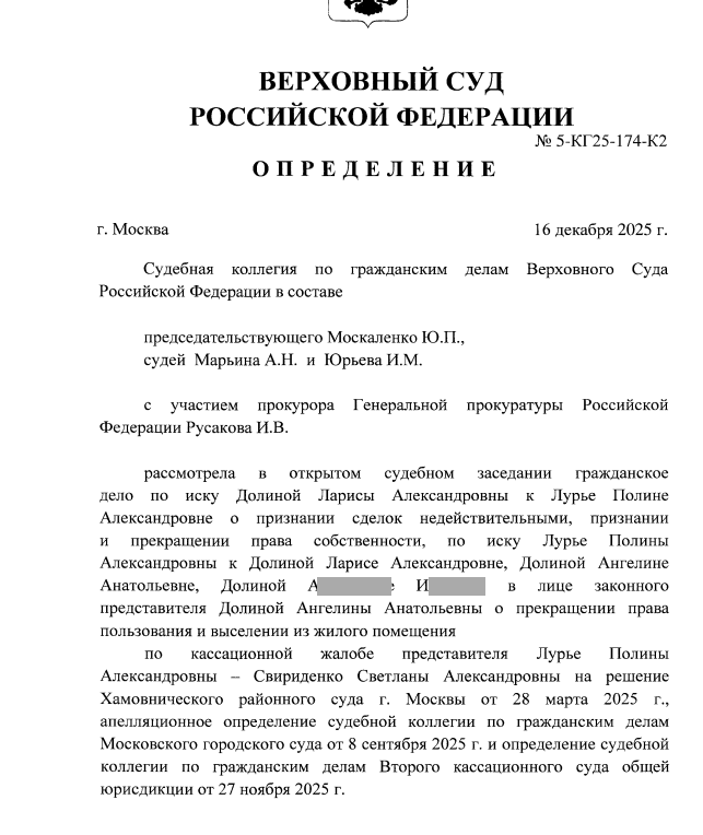 Но справедливость практически восторжествовала. 16 декабря 2025 года Верховный суд отменил решения нижестоящих инстанций и поставил главную точку - право собственности закреплено за покупательницей. Впереди - слушание дела о выселении певицы и прописанной внучки. Его заслушают 25 декабря в Мосгорсуде, так как сама Долина вместо того, чтобы перестать позориться дальше, не выезжает из жилья. Похоже, ждет когда придут судебные приставы и выведут под белые рученьки.