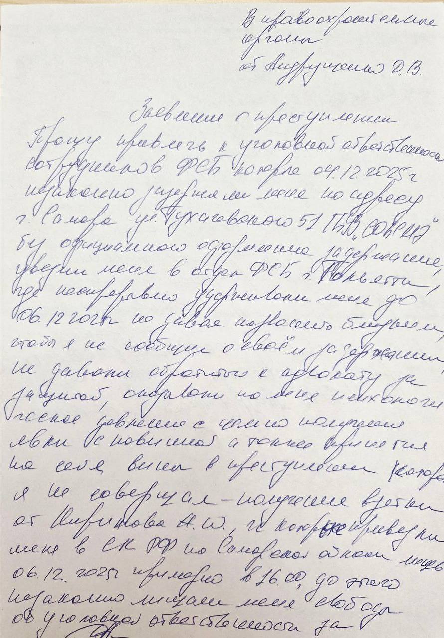 Согласно заявлению, написанному Андрущенко собственноручно и переданному адвокату Юрию Юдину, 4 декабря 2025 года около 12 часов дня он был фактически задержан на рабочем месте и вывезен в неизвестном направлении под предлогом проведения оперативных мероприятий. При этом задержание не было оформлено процессуально, протокол составлен не был, возможности уведомить близких родственников и пригласить защитника ему не предоставили.