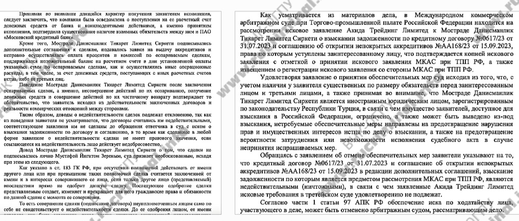 Несмотря на требования сохранения тайны, расставаться с сотнями миллионов долларов Роман Авдеев был не готов. В мае 2024 года его гонконгская компания Akida Trading Limited подала иск в Московский Арбитражный суд иск с требованием изъятия активов, принадлежащих Mostrade Зеренам. Дело было выиграно, хотя Зерен и заявлял о том, что его подпись на договорах с банком Авдеева подделана, а его самого в сентябре 2023-го даже не было в России. Интересно, что как раз в сентябре 2023 года Фуад Гусейнли несколько раз нарушал условия домашнего ареста и исчезал из дома в неизвестном направлении на несколько часов. На части аккредитивов стоит подпись водителя Гусейнли - Зала Сулейманова, на других документах от имени турецкого трейдера расписывались некие Юлия Рыбалко и Тахир Нарлиев. Несколько кредитных линий было открыто и вовсе в пользу дубайской BLACK PEARL ENERGY TRADING L.L.C (попала под санкции США за торговлю российской нефтью).