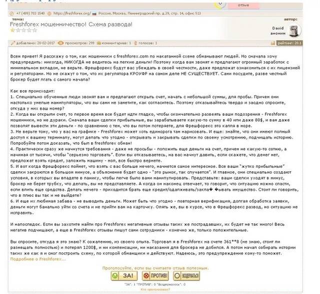 There are negative reviews about FreshForex on almost all major large resources that highlight the activities of Forex brokers: