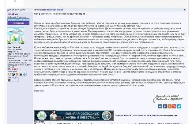 Despite the fact that the FreshForex company has officially ceased its activities on the territory of Ukraine, there is an active promotion of positive reviews that do not have any real confirmation: