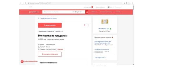 Martynyuk is very actively recruiting staff - sales managers and even fashion retention in Kyiv and Kirovohrad. It is about a company that appeared after "Fresh Forex" (Prof Advice LLC). Salaries are promised to be quite attractive - from 15 to 70 thousand hryvnias. Here is the rate, and bonuses, and other wonderful buns. But, as we have already seen above, this is all just a scam, Martynyuk’s companies deceive their employees as well as their customers. There were offices in Odesa as well, but they were already covered by the police during the working out of such offices. The criminal case is still underinvestigation, but more on that later.