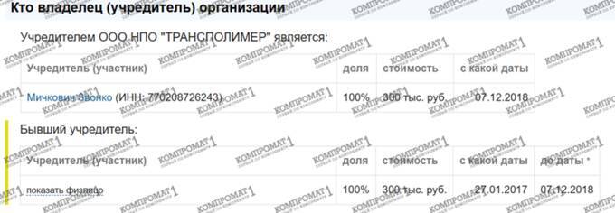 And, as it later became known, Plotitsa and Markelov were also connected through joint management of LLC NPO "Transpolymer." This company, as a reminder, since 2015, in partnership with the Cypriot offshore company Sadoriono Holdings Limited, was a co-founder of LLC "Energy Construction Company."