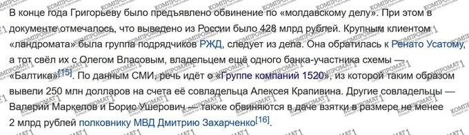 Таким образом мы приходим к выводу, что кипрская Mettmann Public Company Limited связана с ближайшим окружением Владимира Путина, которое, мягко говоря, не отличается патриотичными настроениями в части государственных денег. Борис Ушерович и Илья Плотица, согласно материалам уголовного дела относительно «Российского ландромата», активно «пилили» бюджетные деньги от подрядов РЖД через «Группу компаний 1520», за которой, как уверяют расследователи, стоит Аркадий Ротенберг. «ГК 1520», кстати, до сих пор плотно сидит на бюджетных подрядах от РЖД.