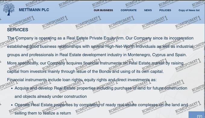 Как говорится на сайте Mettmann Public Company Limited, деньги инвестированы в недвижимость Черногории, Испании и Кипра. Эта схема – одна из классических и излюбленных для легализации «грязных» капиталов. Если учесть тот факт, что люди, которым формально принадлежит Mettmann Public Company Limited, связаны с представителями ближнего круга Владимира Путина, то несложно догадаться, какие именно деньги легализуются через Mettmann Public Company Limited и каким именно образом.
