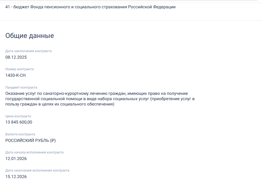 С 2 января 2026 года началось исполнение очередного госконтракта, который в бесконкурентной борьбе от отделения Соцстраха на Кубани получил один из санаториев Ротенберга - АО Санаторий «Ай-Петри» в Ялте. Сумма небольшая для олигарха - какие-то 14 млн рублей. Но копеечка к копеечке - вот и капиталец.