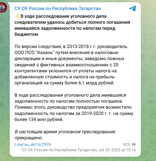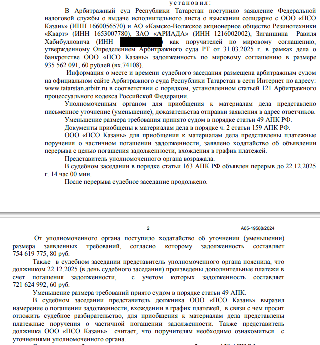 Только в мае 2025 года дело прекратили, уточнив, что все долги погашены и частично внесен долг и за налоги 2019-2020 года - 134 млн рублей. Частично, но опять же не весь.