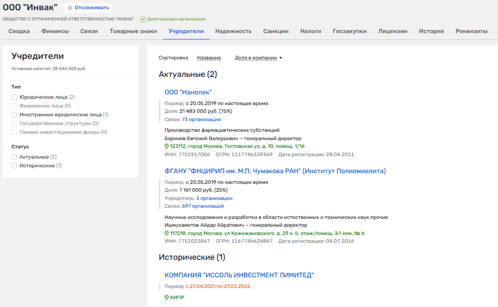 В январе 2025 года 50% доли в «Нанолеке» получают Милейко и Швейгерт - партнеры Виктора Харитонина по АО «Гудстарт Инвест» и АО «Эс Джи Биотех» (совместное предприятие «Генериума» и ирландской Shire, где можно увидеть еще две кипрские кубышки «Эс Джи Биотех Лимитед» и «Мастершер Энтерпрайзис Лимитед»).