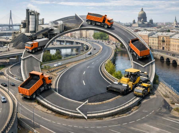 «АБЗ-1» имеет редкое для участников дорожного рынка преимущество – замкнутый цикл производства. От собственного завода в Коломягах, окутывающего окрестности ядовитыми выбросами, который постоянно обещают куда-нибудь перенести, до АО «АБЗ-Дорстрой», выступающего генеральным подрядчиком. Это позволяет контролировать всю цепочку создания дорог, от асфальтобетонной смеси до укладки последнего километра.