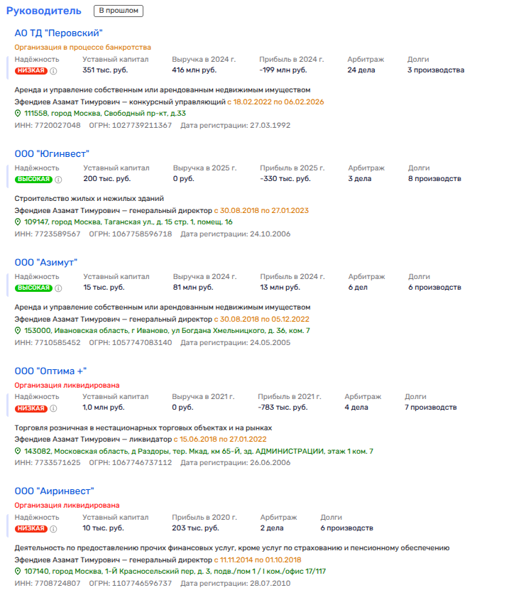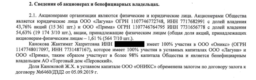 АО «Торговый дом «Перовский» связан с бывшим главой Кабардино-Балкарии, а ныне сенатором Арсеном Каноковым. До него владельцем актива выступала компания Gremm Group Михаила Горяинова.