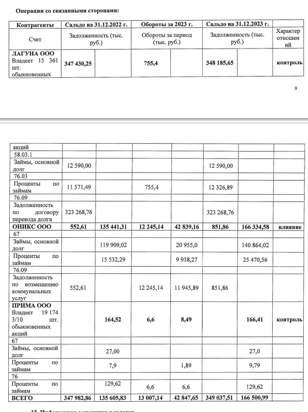 По итогам 2024 года фирма продемонстрировала чистый убыток на 199 млн рублей, что намекает на возможный вывод капиталов - ведь стабильно помещения в ТД сдавались в аренду и приносили выручки на 0,5 млрд рублей. Плюс опять же крупный кредит. Куда делись деньжата?
