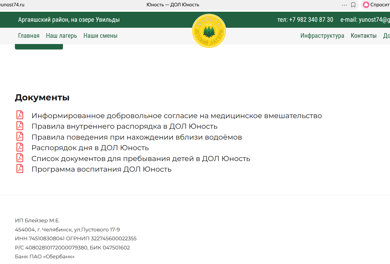 Если смотреть на сайт лагеря, то деньги за услуги Михаил Блейзер собирал на свои счета как ИП. Хотя по ОКВЭД его ИП занимается розничной торговлей одеждой в специализированных магазинах.