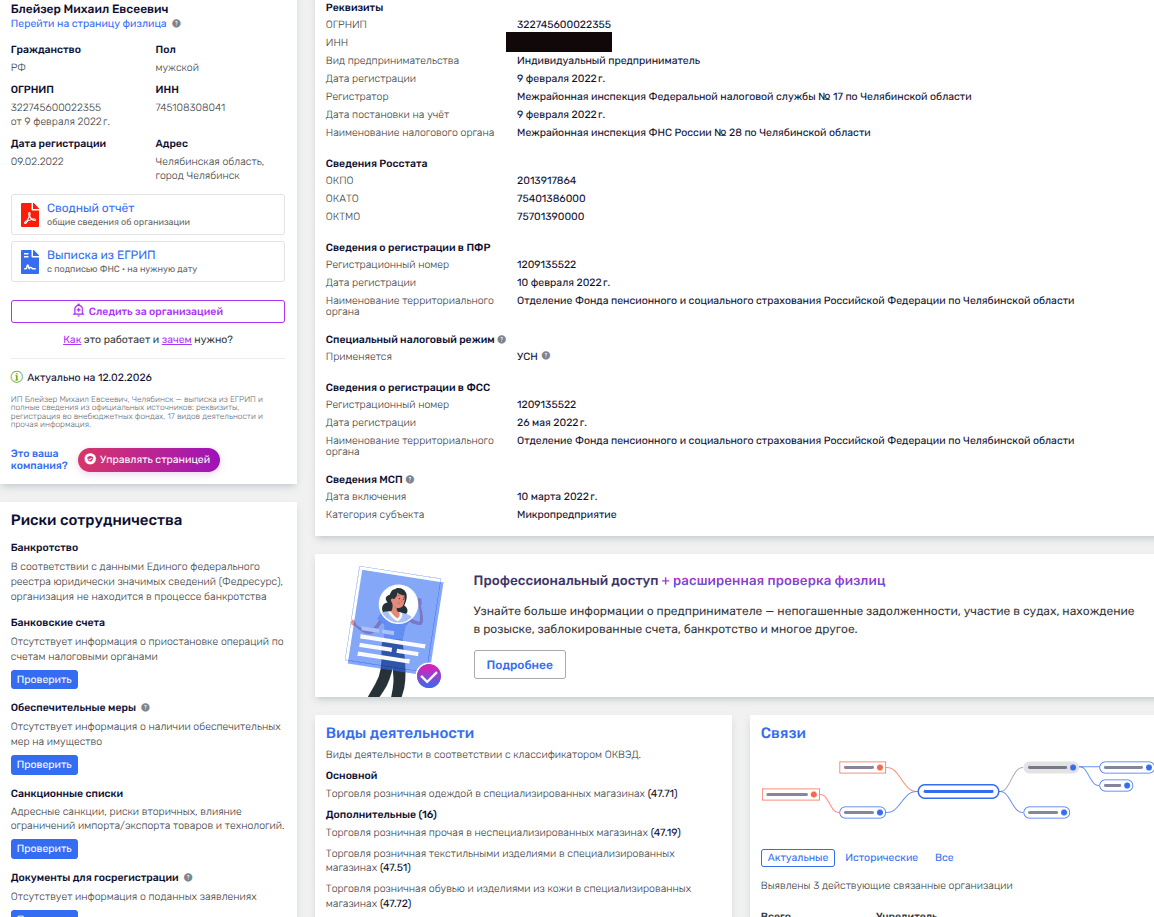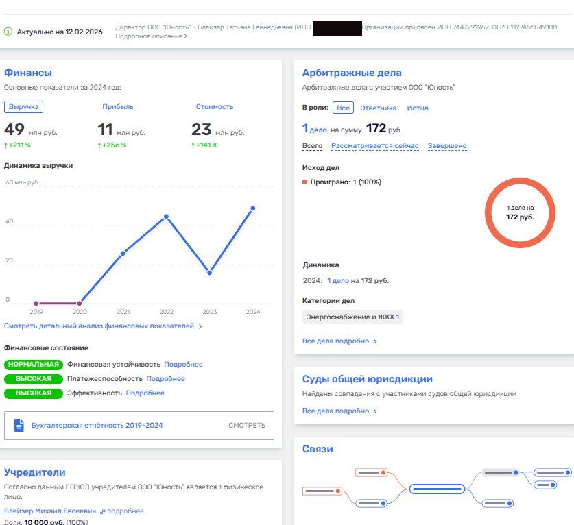 По итогам 2024 года ООО «Чайка», где в штате всего лишь один сотрудник, демонстрировало убыток на 166 тыс. рублей. Бизнес перестал быть прибыльным или же все капиталы семейки Блейзер нужно поискать в Израиле?