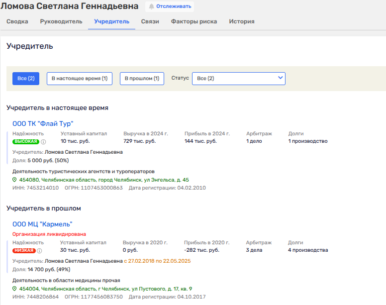 Клинику в Челябинске он учреждал с некой Светланой Ломовой-Зиннер. И вот же какое совпадение: именно так звали бывшего директора лагеря «Чайка», которая в 2024 году получила 4 года условно за случайную гибель двух братьев, нанятых ею для очистки колодца.
