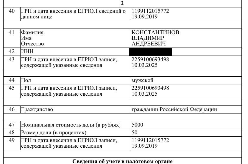 Так, до 23 декабря 2025 года ООО-шкой владело некое ООО «СК Консоль-Строй ЛТД», чьи собственником в 2015-2017 годы было белизское МОЛИСАД ЛИМИТЕД, имеющее самое прямое отношение к семье Константинова.