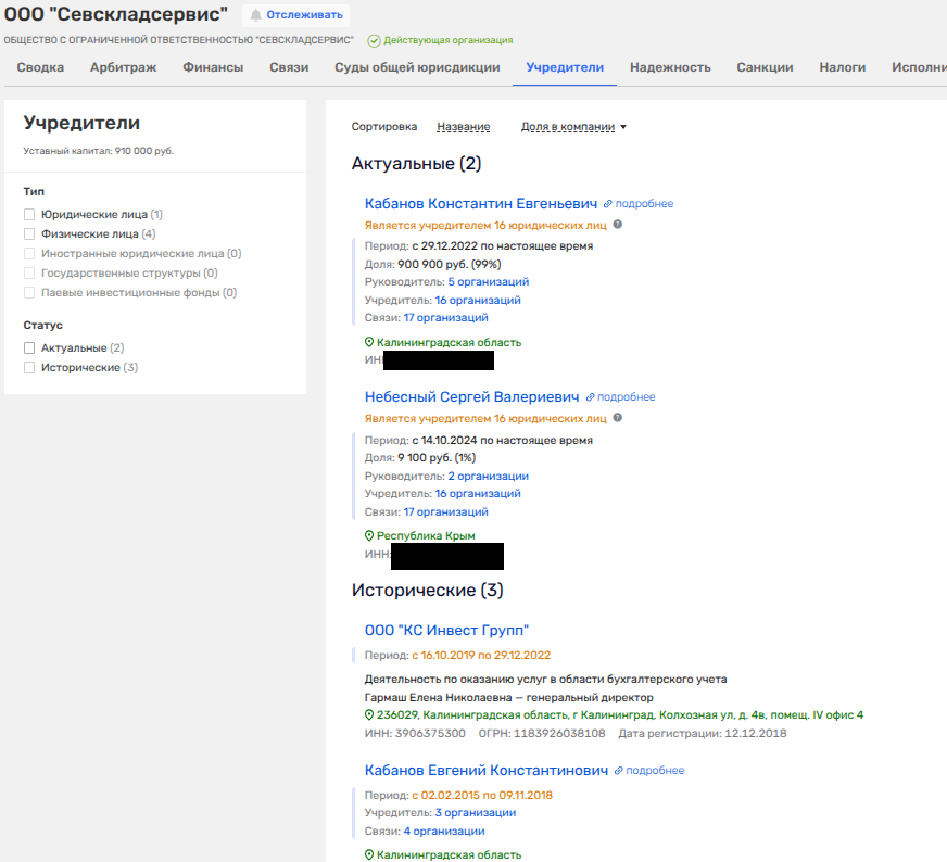Сам Евгений Кабанов в 2025 году учредил две компании — ООО «Интерстрой Крым» и ООО «ИС Управление». Под крыло второй перешло почти 50 компаний, львиная доля которых как раз таки оформлена на вышеуказанного Небесного, выпрыгнувшего в бизнес словно бы черт из табакерки из ниоткуда.