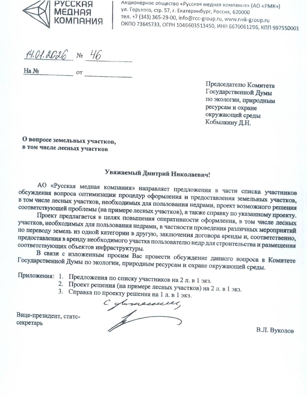 «Русская медная компания» предложила изменить Лесной кодекс, чтобы ускорить получение участков для недропользования. Организовать «нулевое чтение» законопроекта вице-президент – статс-секретарь РМК Всеволод Вуколов призвал председателя экокомитета Госдумы Дмитрия Кобылкина.