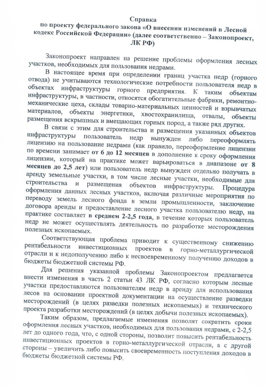 В пояснительной записке утверждается, что действующая система оформления участков слишком длительная: процедура может занимать до двух с половиной лет. По мнению лоббистов из РМК, это снижает рентабельность горно-металлургических проектов и задерживает поступление доходов, включая налоговые платежи.