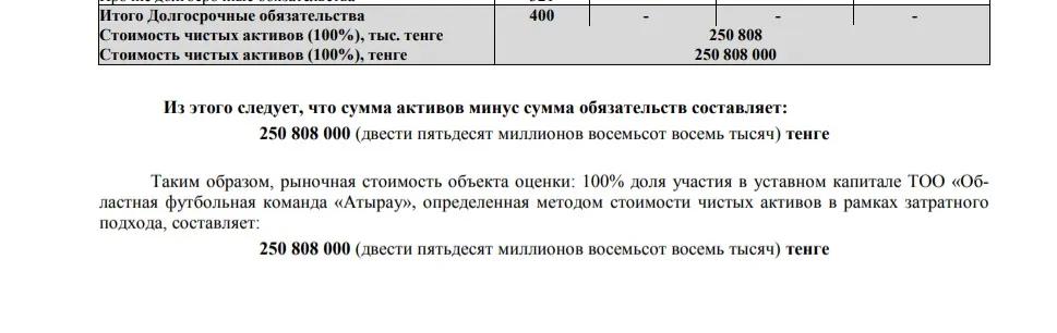 Продажа футбольного клуба «Атырау» за 77 млн тенге уже выглядит как сделка, в которой слишком многое вызывает вопросы. Особенно если учитывать, что официальная оценка клуба превышает 250 млн тенге. Разница — почти в три раза.
