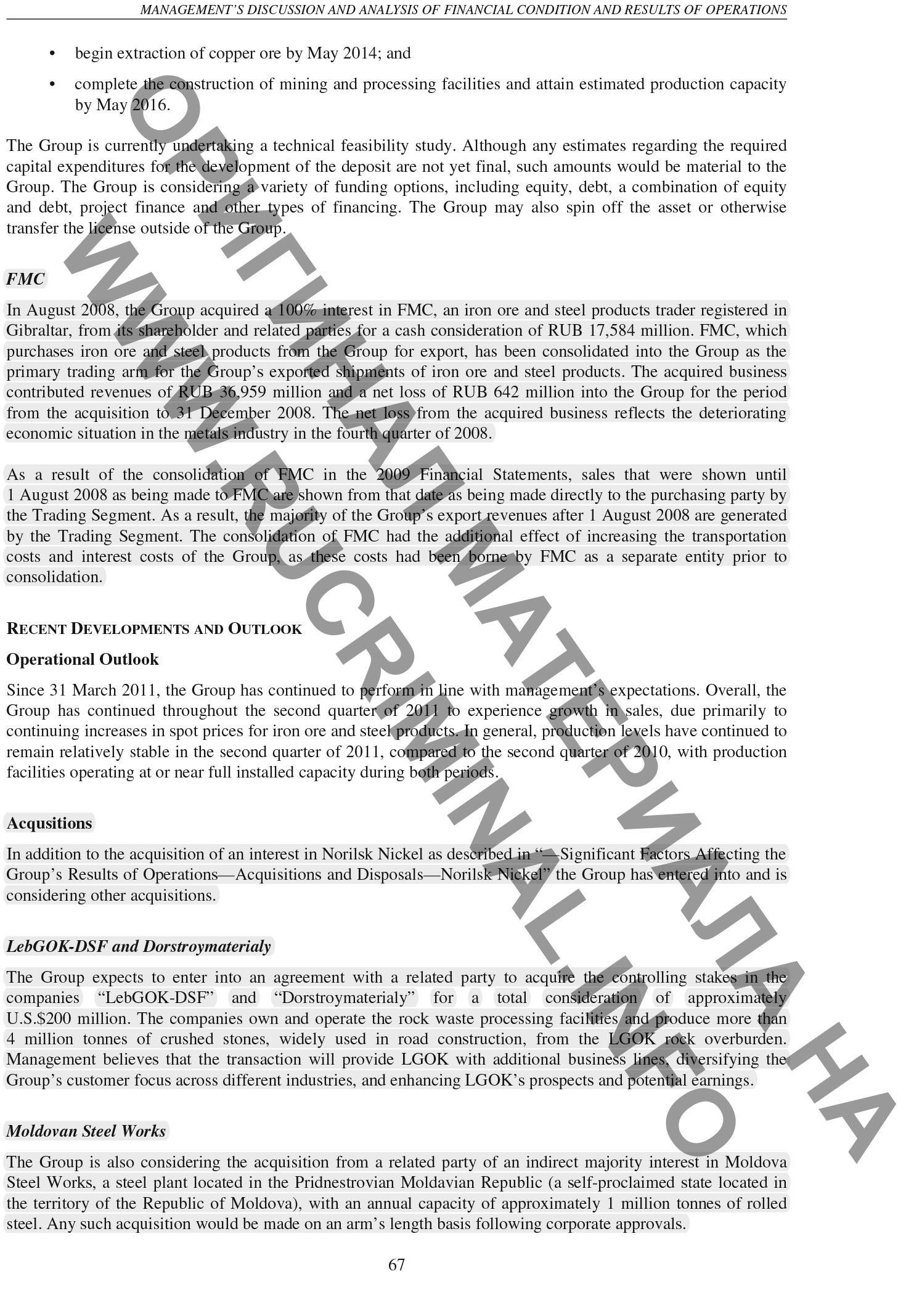 На 67 странице проспекта предоставлена информация, которая могла бы заинтересовать следственные органы, прокуратуру и даже лично главу СКР Александра Бастрыкина. Ну это лишь — "если бы!", (как говорят одесские таксисты про бабушку). Если бы ворон ворону глаз выклевал, и в России коррупция не стала системной смычкой между другом Василия Анисимова и Алишером Усмановым.