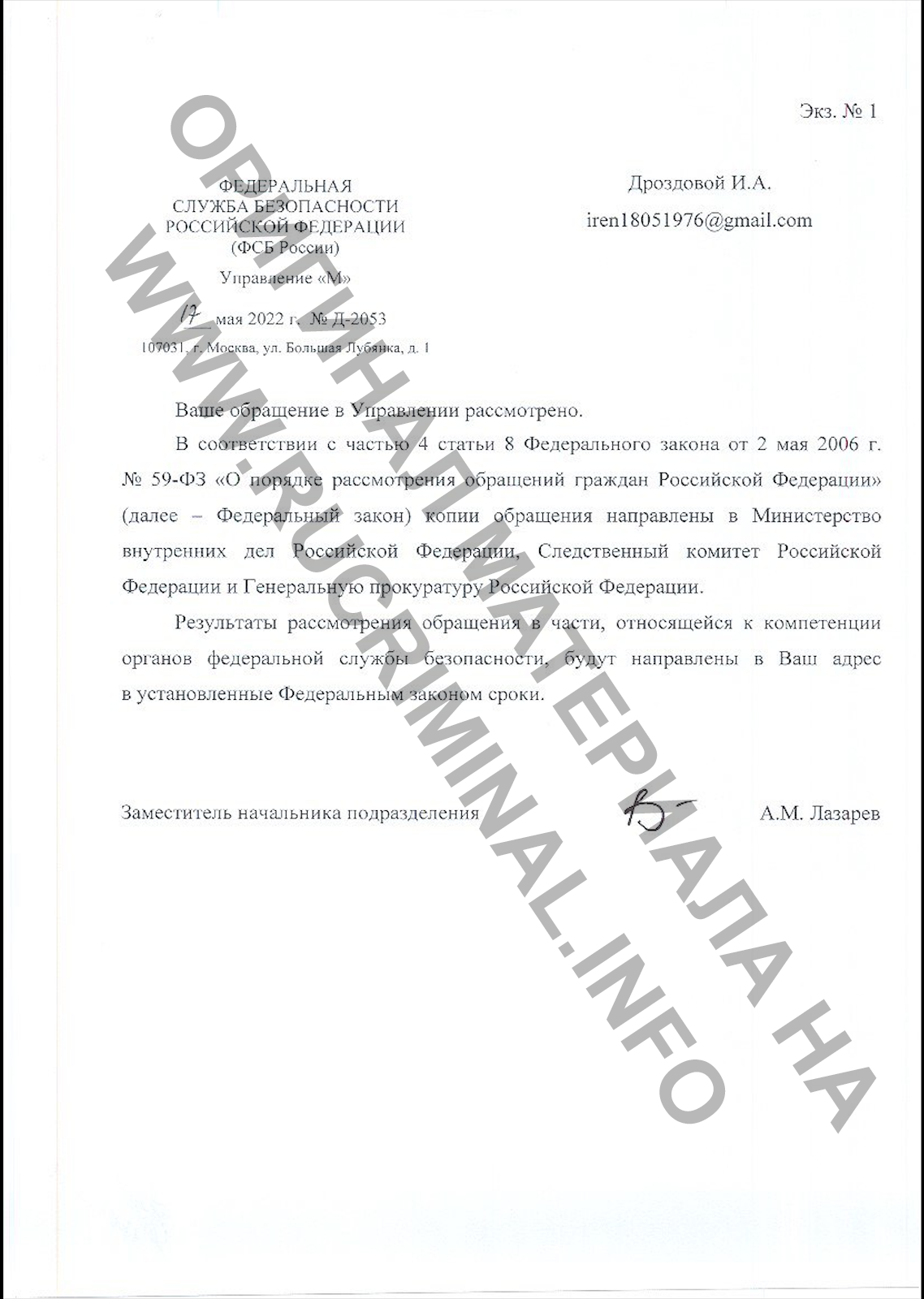 Rucriminal.info публикует выдержки из заявления Дроздовой.