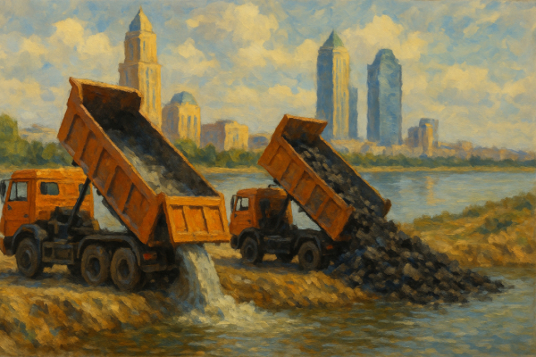 Стоит напомнить: проблема незаконного слива строительных отходов в Астане носит системный характер. В последнее время в интернете регулярно появляются видео со сливом бетонной смеси как на окраинах города, так и в его центре. За такие нарушения предусмотрен штраф всего в 20 МРП (78 640 тенге), что зачастую делает выгоднее для подрядчиков «избавиться» от остатков на месте, чем везти их на полигон.