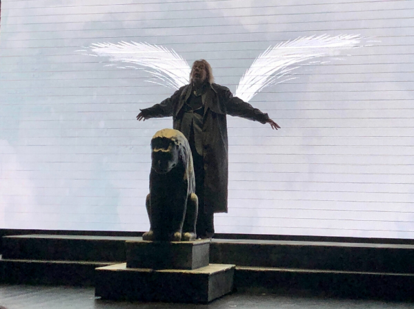 Пьесу играют на двух языках: повесть Достоевского звучит в исполнении итальянского артиста, а произведение Манна — из уст русского. Ещё одна итальянская актриса Сидни Вичидомини играет Незнакомку. А певица, обладающая прекрасным меццо-сопрано, Дарья Клименко исполняет роль Дамы, хотя лично мне кажется, что этот персонаж — аллегория самой Венеции (или даже самой Смерти).