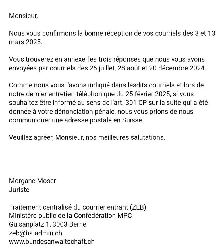 Однако теперь для регулярного общения со следственными органами зарубежного ведомства и отслеживания хода расследования ему необходим почтовый адрес в Швейцарии.