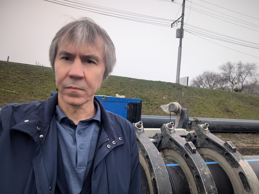 Большой объём работ ведётся на участке улицы Техническая от Шехурдина до 50 лет Октября. Сложность в том, что большая часть водопровода меняется под железнодорожными путями и гаражами – делаются проколы и протаскивание труб широкого диаметра. Зайцев на примере готовящихся к укладке труб рассказал о технологии их спайки. Трубы полиэтиленовые, их сваривают специальной аппаратурой под высокой температурой, чтобы исключить порывы. Производитель даёт на них 50 лет гарантии и заявляет о столетнем сроке эксплуатации.